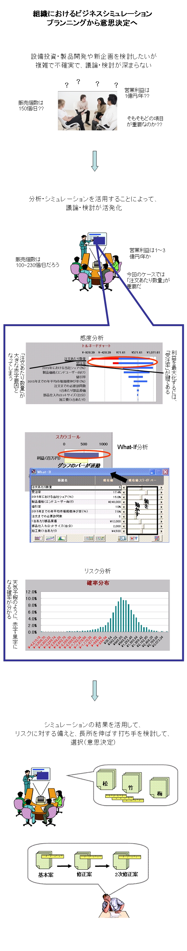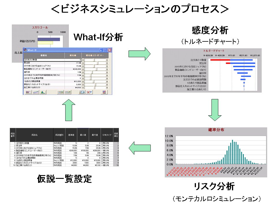 不確実性に対処したプランニング、投資評価を支援する、ビジネスシミュレーション。